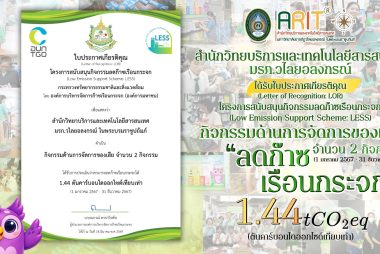 ได้รับใบประกาศเกียรติคุณ จากโครงการสนับสนุนกิจกรรมลดก๊าซเรือนกระจก(Low Emission Support Scheme: LESS)